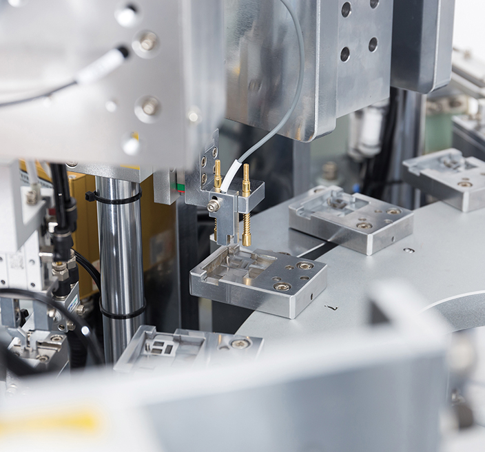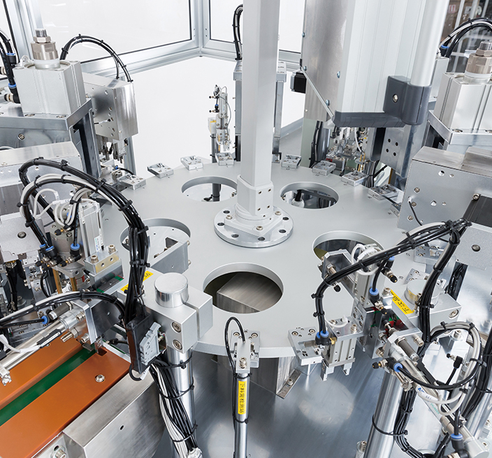 该设备针对冰箱压缩机保护器产品结构开发的一款非标自动化设备,主要功能有基座、插脚一、二、三自动投入组装,铆接功能,是一台多物料散件组装设备。