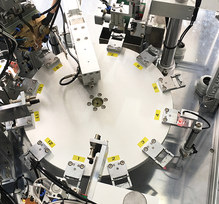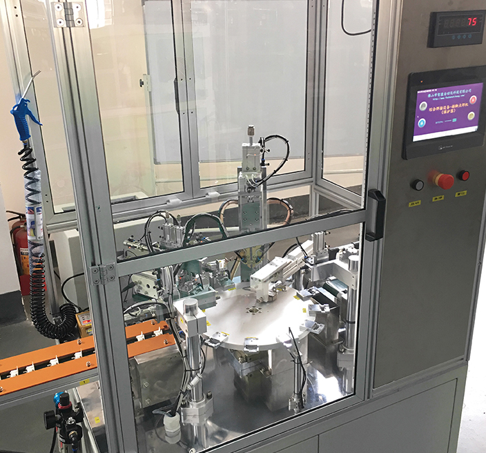 该设备针对冰箱压缩机保护器产品结构开发的一款非标自动化设备,主要功能有底座自动投入、插脚自动投入、插脚焊接、插拔力检测等