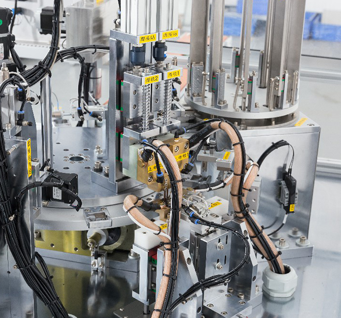该设备针对冰箱压缩机保护器产品结构开发的一款非标自动化设备,主要功能有发热丝自动投入、焊接、整形、高度检测等功能